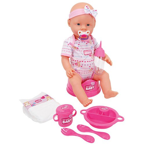 Simba 105039005 – New Born Baby, Funktions-Baby-Puppe (trinkt/näßt), inklusive Zubehör, 43 cm